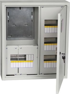 Щит учетно-распределительный навесной для трехфазного счетчика с 24 модулями, покрытие шагрень RAL 7035