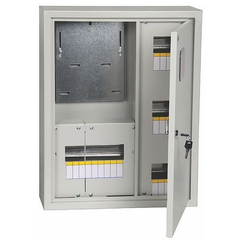 Щит учетно-распределительный навесной для трехфазного счетчика с 18 модулями, покрытие шагрень RAL 9016