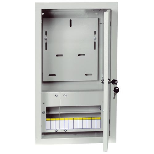 Щит учетно-распределительный встраиваемый для трехфазного счетчика с 9 модулями, покрытие шагрень RAL 7035