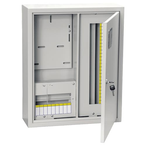 Щит учетно-распределительный навесной для трехфазного счетчика с 30 модулями, оснащен замком