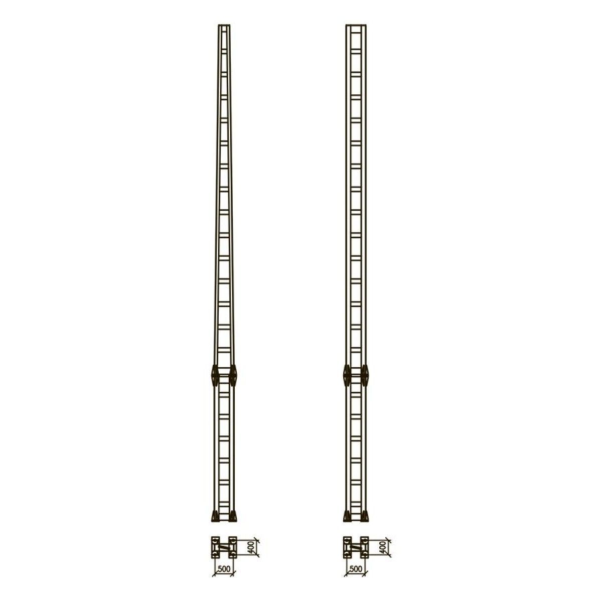 Металлическая стойка опоры контактной сети ж/д из гнутого швеллера, цельная (четыре пояса), под жесткую поперечину, высотой 12 метров, 147 кН*м