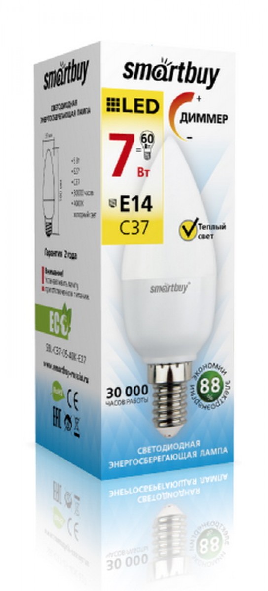 Светодиодная лампа SBL-C37D свеча диммируемая, 7 Вт, тип цоколя Е14